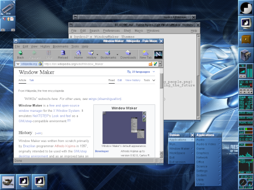 None of the backgrounds used in these themes are mine! I'm trying to link as much of them to their respective artists on my git page. The webpage is very reminiscent of Tower's Window Maker Themes page as that was intentional in a way as an homage to them. The website has been written using identical HTML code to Tower's site for authenticity and for older browser support. Also, the website won't support Responsive Web Design because All full size screenshots were taken at 1024x768 while the small ones were reduced to |
